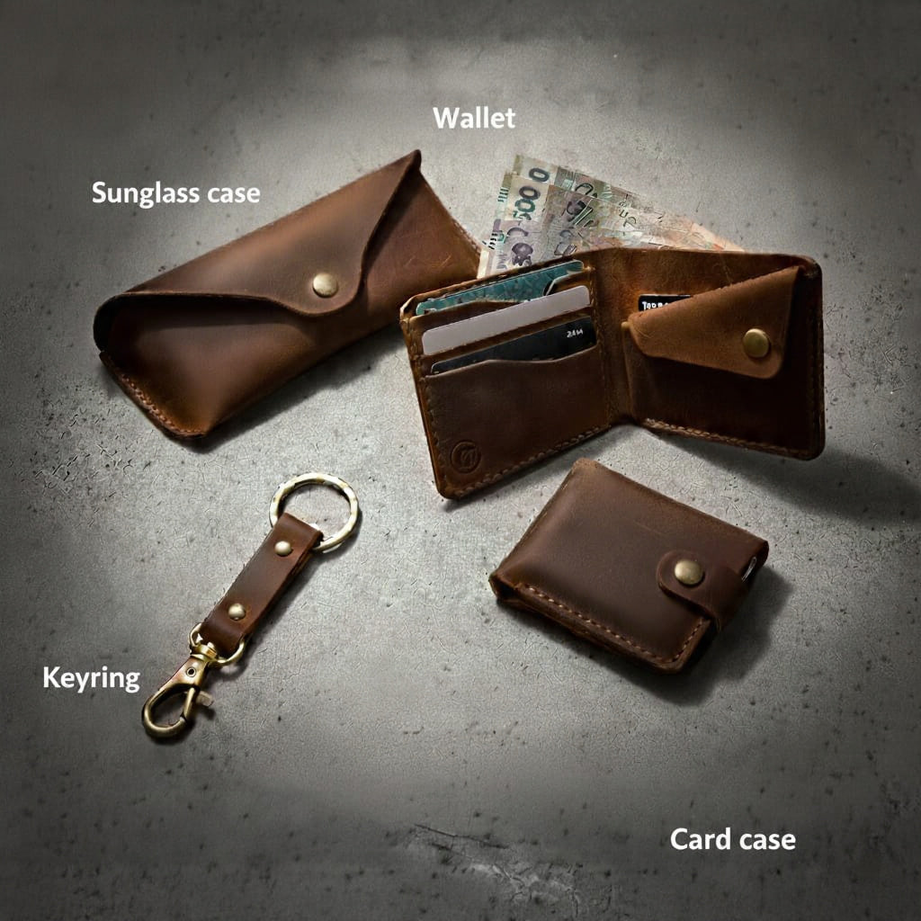Carry your confidence in style with our Premium Wallet, Card Case, Sunglass Case, and Keyring β all crafted to perfection.
