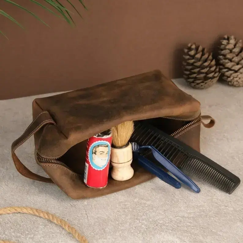 Crafted from genuine leather, this toiletry bag combines rugged durability with timeless sophistication. Spacious compartments and water-resistant lining keep your grooming essentials neatly organized while traveling. Perfect for both men and women who value understated luxury and craftsmanship. π Designed to journey with you β from business trips to weekend getaways.